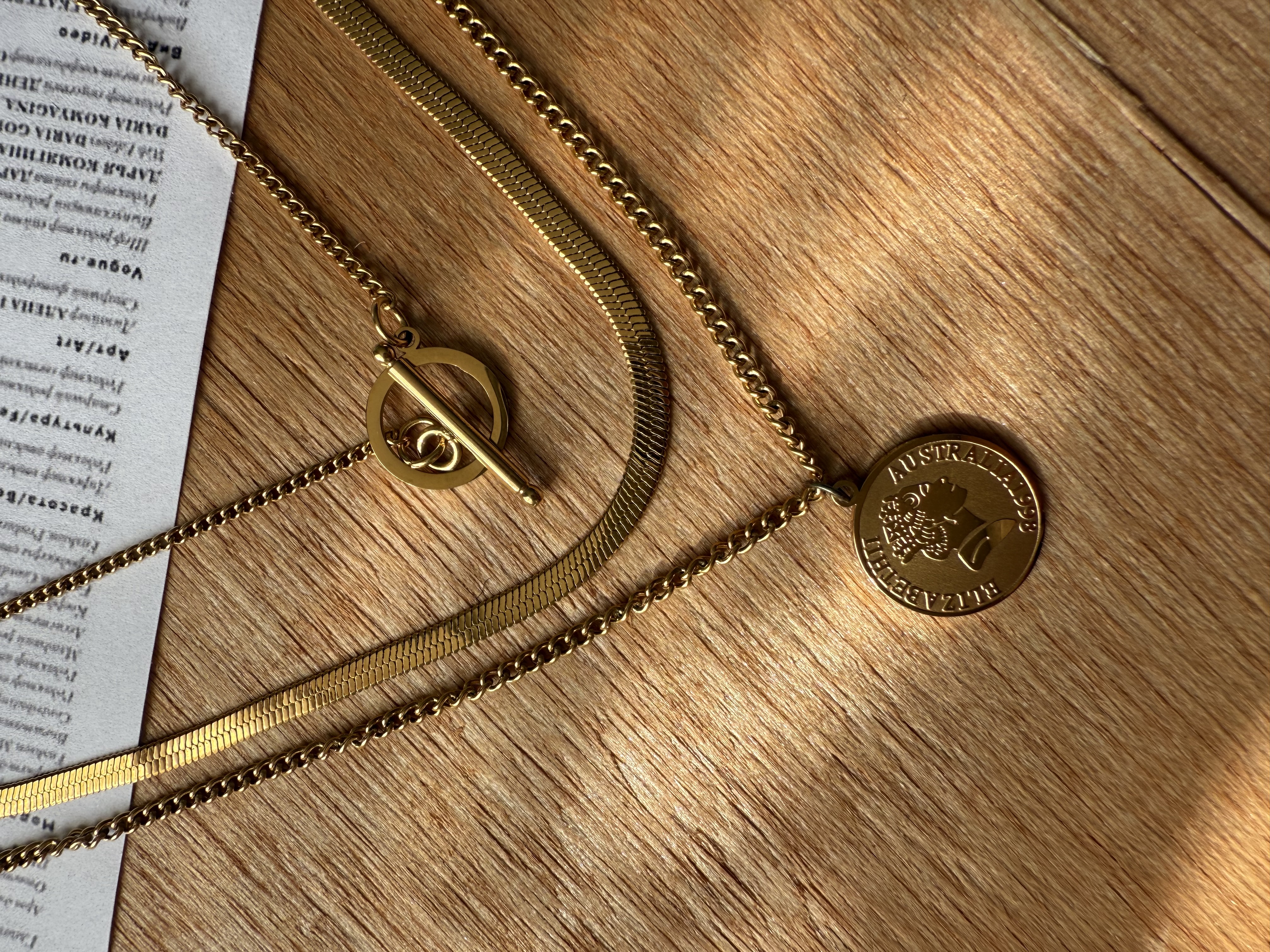 گردنبند سه لاین طلایی جنس استیل استنلس