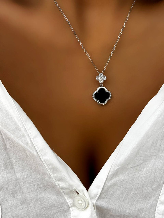 گردنبندونکلیف دوگل مشکی نقره ای مینیمال/رنگثابت و بدون حساسیت / مناسب استفاده روزانه و هدیه دادن / از مواد شوینده و عطر و ادکلن دور نگهداشته شود