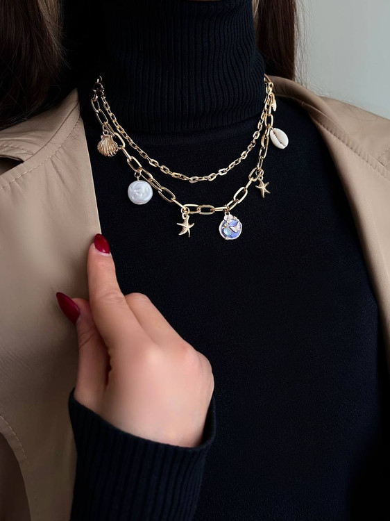 گردنبند دو لاین صدف و ستاره دریایی طلایی