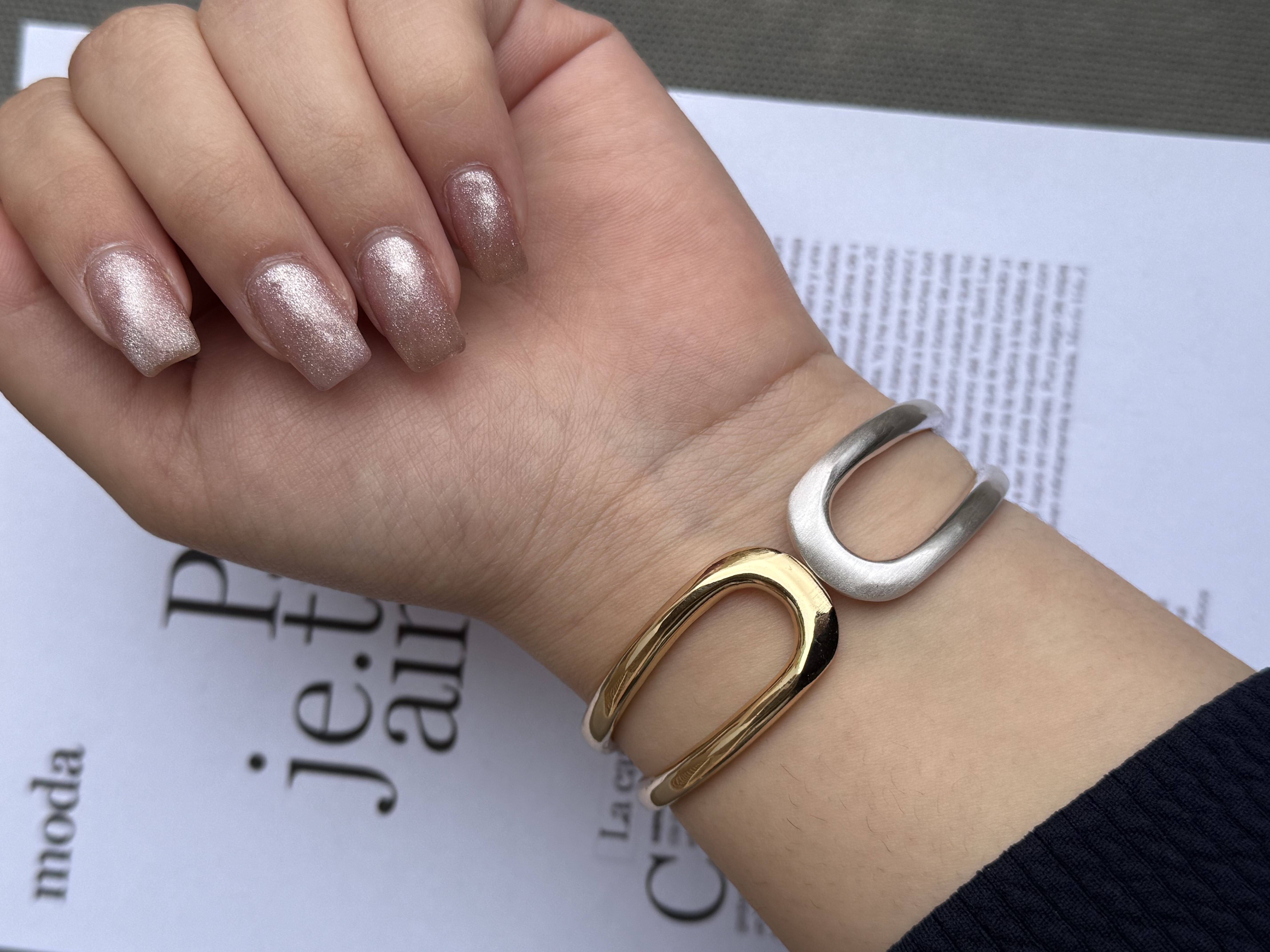 بنگل زنانه مدل فشن / رنگ ثابت و بدون حساسیت / فری سایز و از بالا دو طرفش باز میشه راحت میتونید بندازید/از مواد شوینده و عطر و ادکلن دور نگهداشته شود.