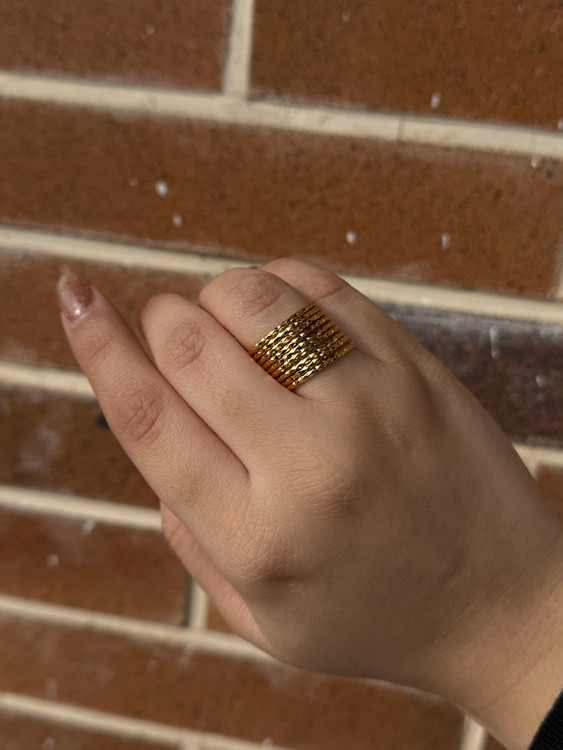 انگشتر زنانه مدل تراش ۹ لاین طلایی / بسیار براق و زیبا /درجای خشک و تمیز نگهداشته شود / ازمواد شوینده و عطر و ادکلن دور نگهداشته شود