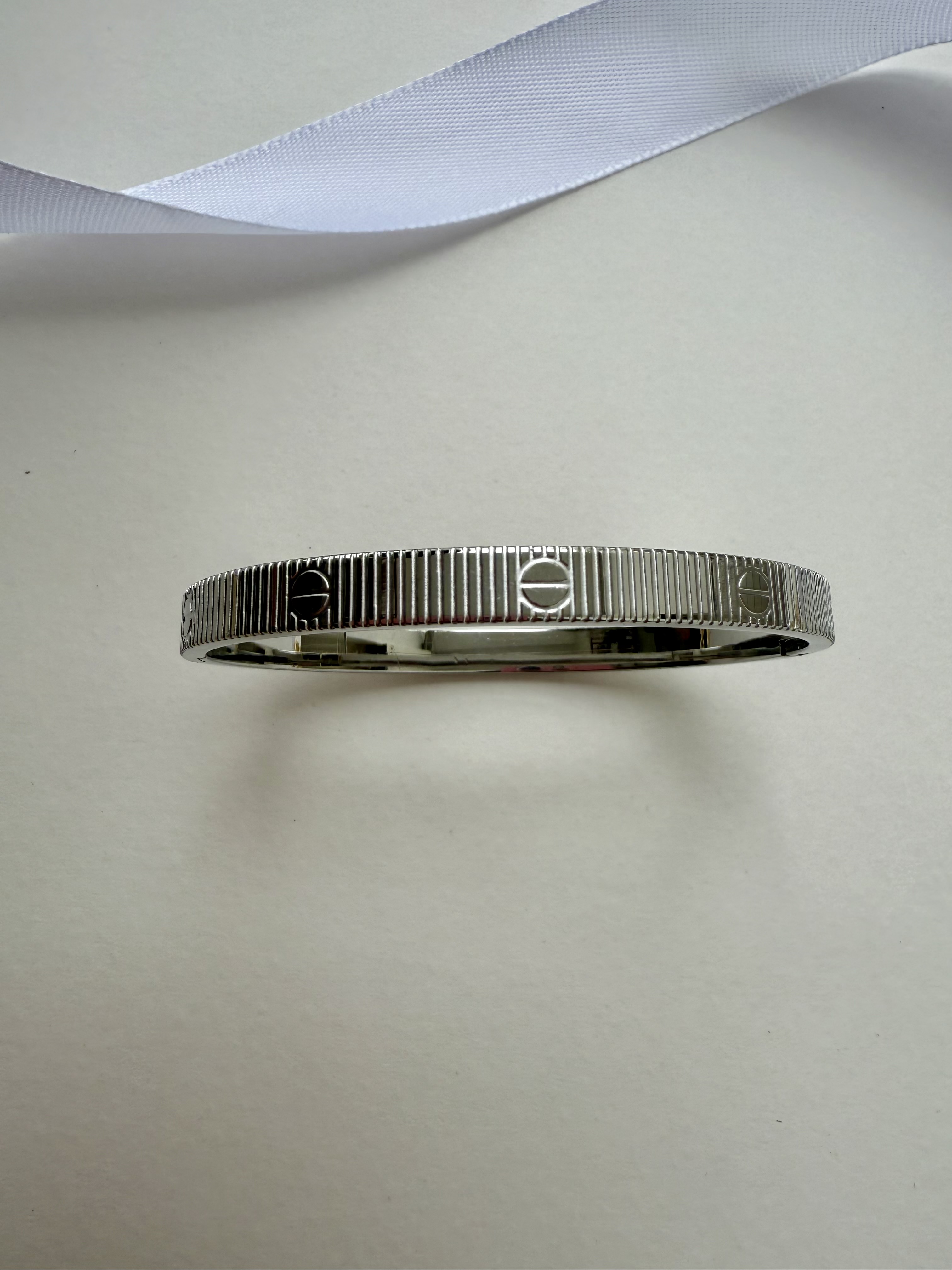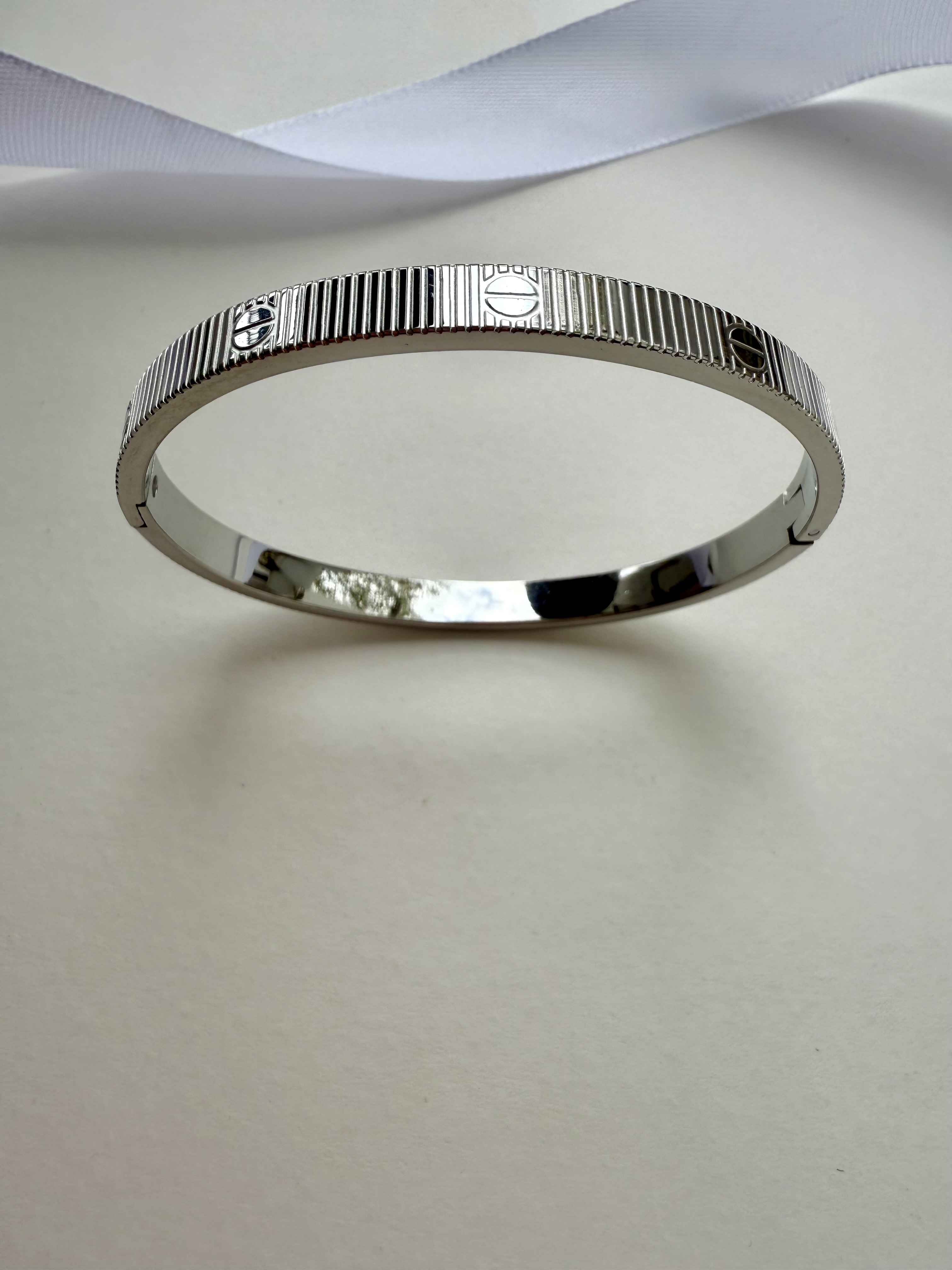 بنگل دستبند کارتیر نقره ای مدل راه راه