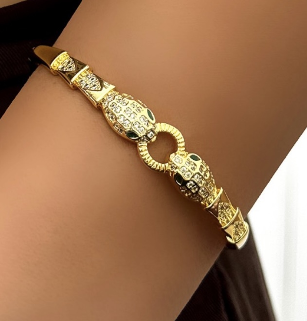 بنگل زنانه مدل دراگون و حلقه جواهری طلایی