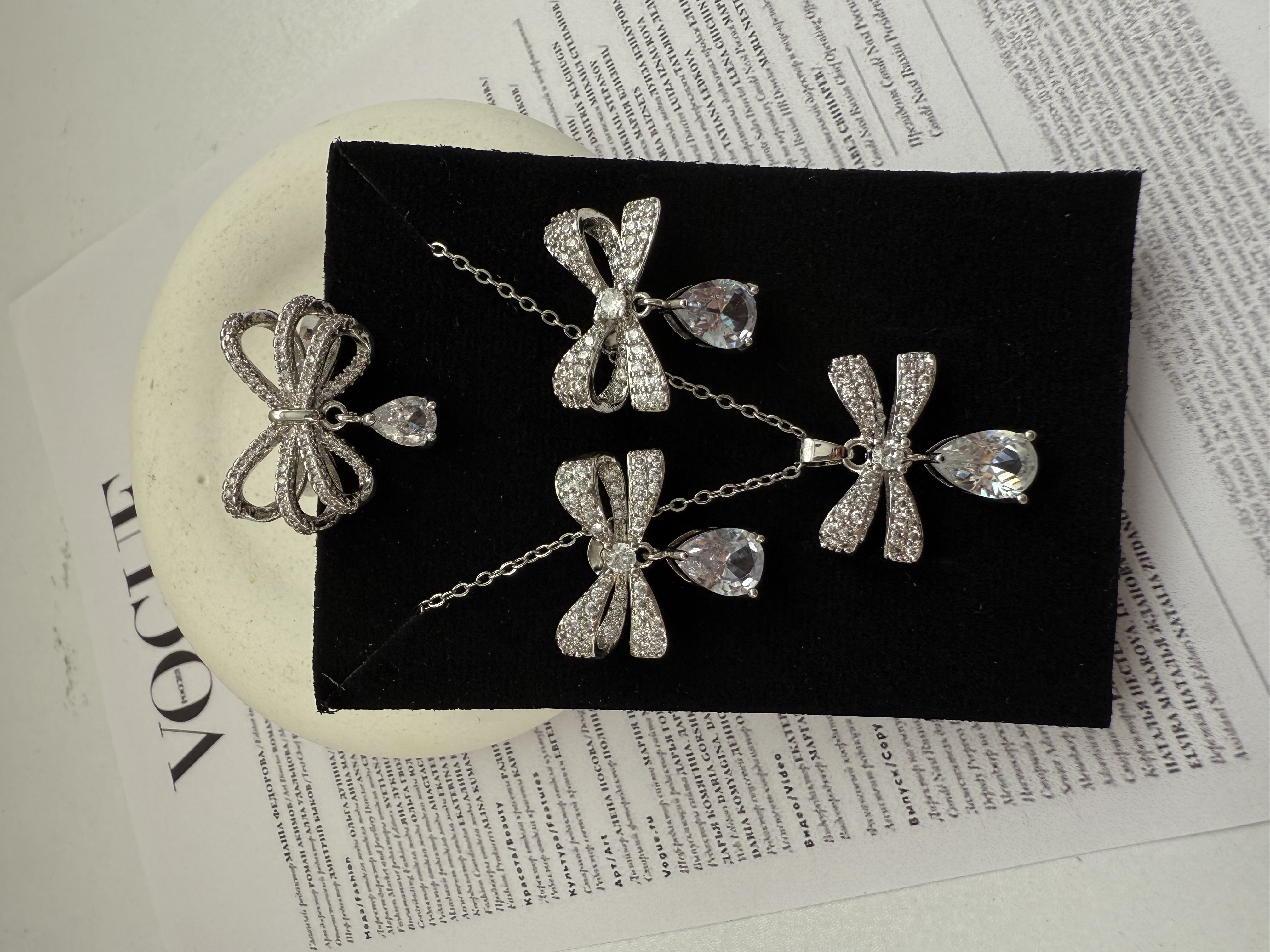 نیمست زنانه مدل پاپیون با نگینهای مخراج کاری شده بدون ریزش /گوشواره کار میخی/از مواد شوینده و عط و ادکلن دور نگهداشته شود.
