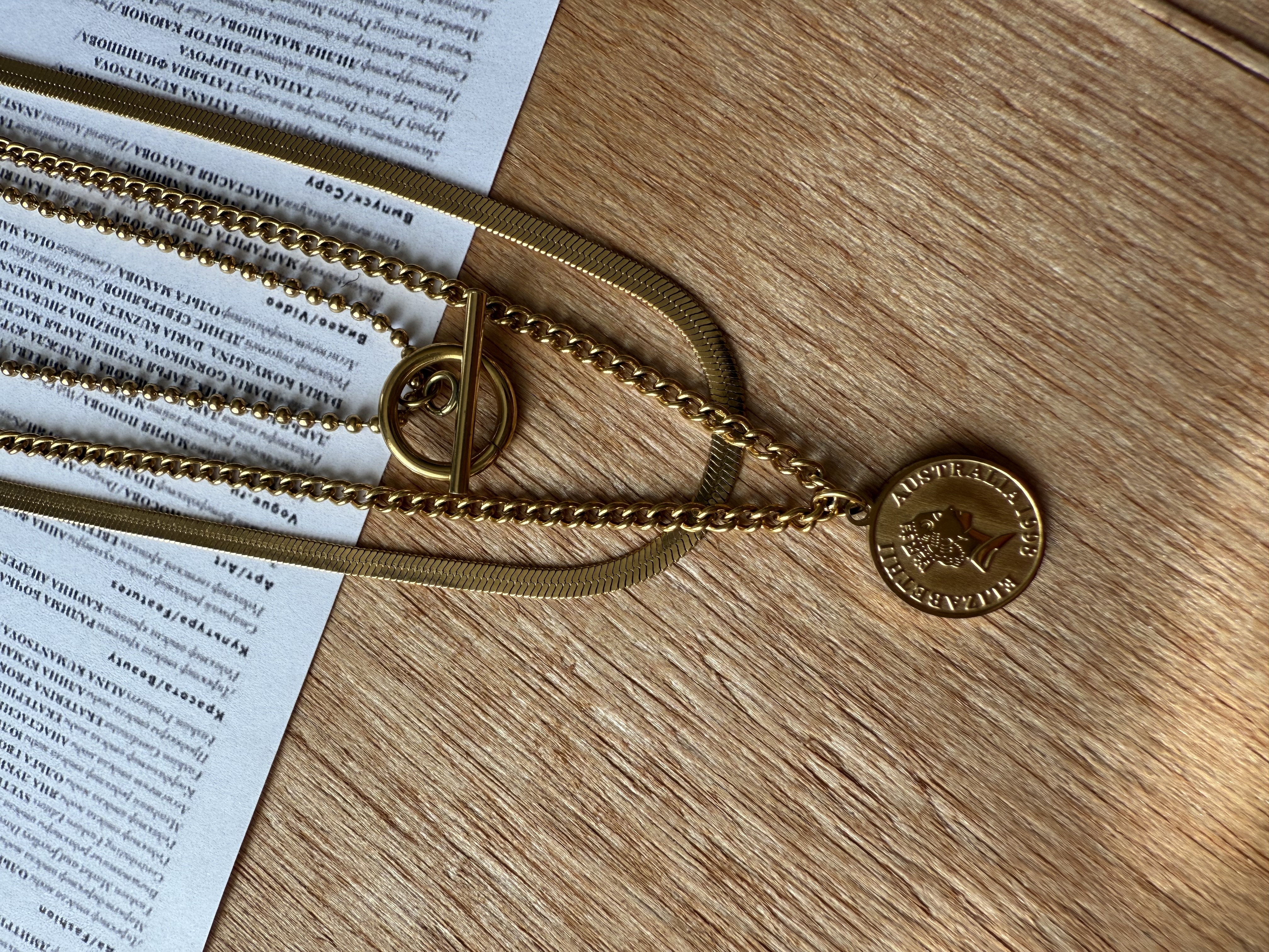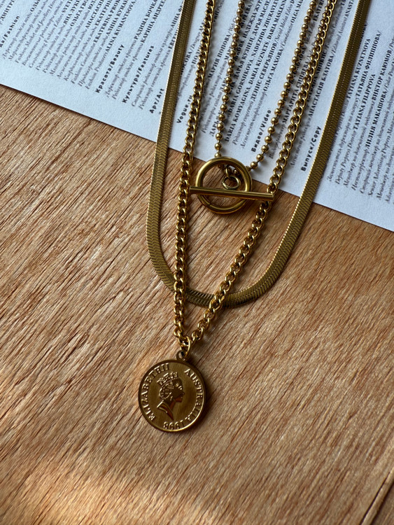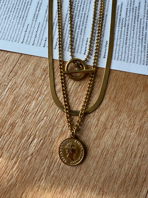 گردنبند زنانه مدل سه لاین/جنس بسیار باکیفیت استیل استنلس/رنگثابت و بدون حساسیت/از مواد شوینده و عطر و ادکلن دور نگهداشته شود(فقط برای افزایش طول عمر گردنبند)
