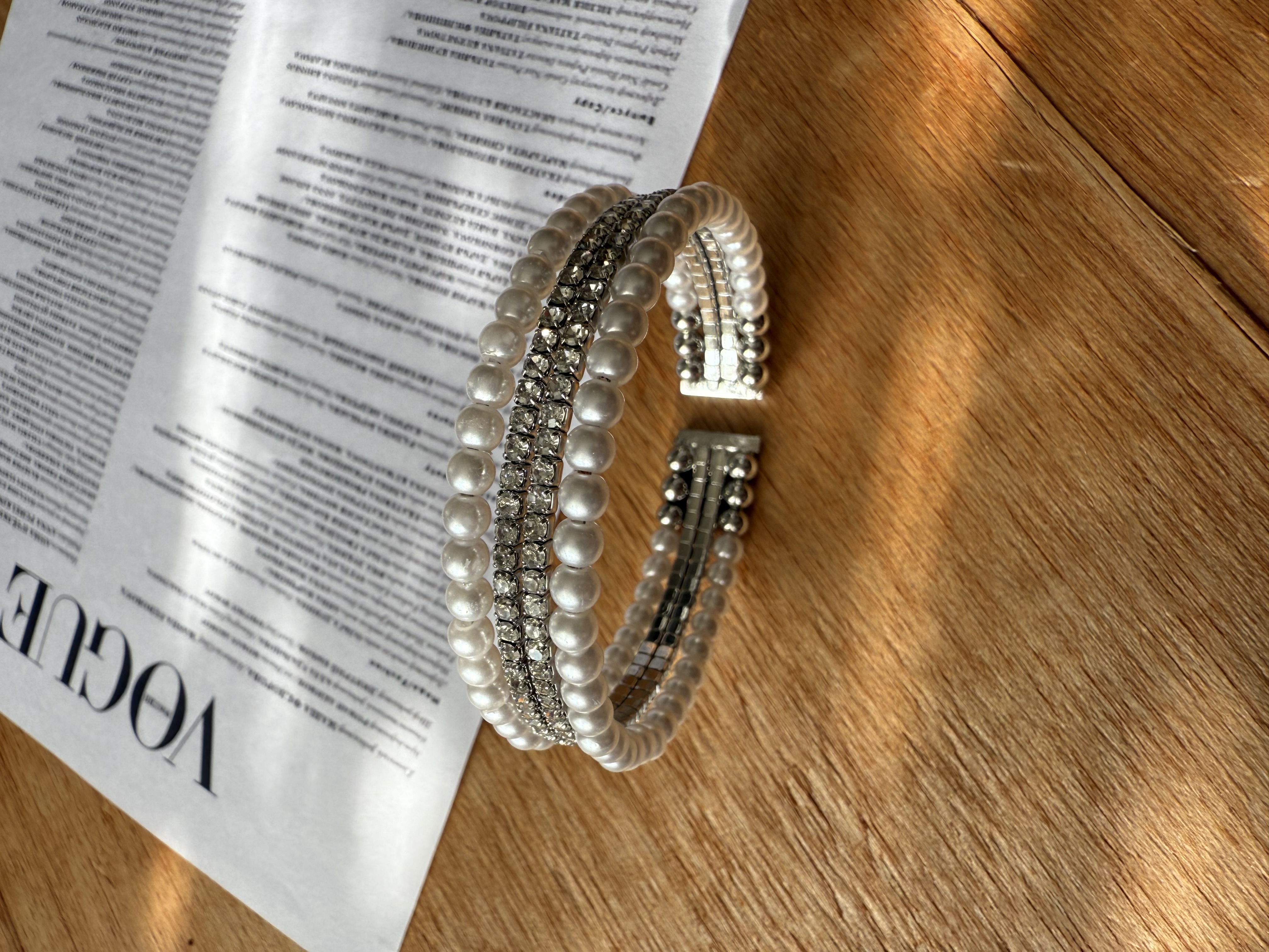 دستبند زنانه مدل فول مروارید فری سایز