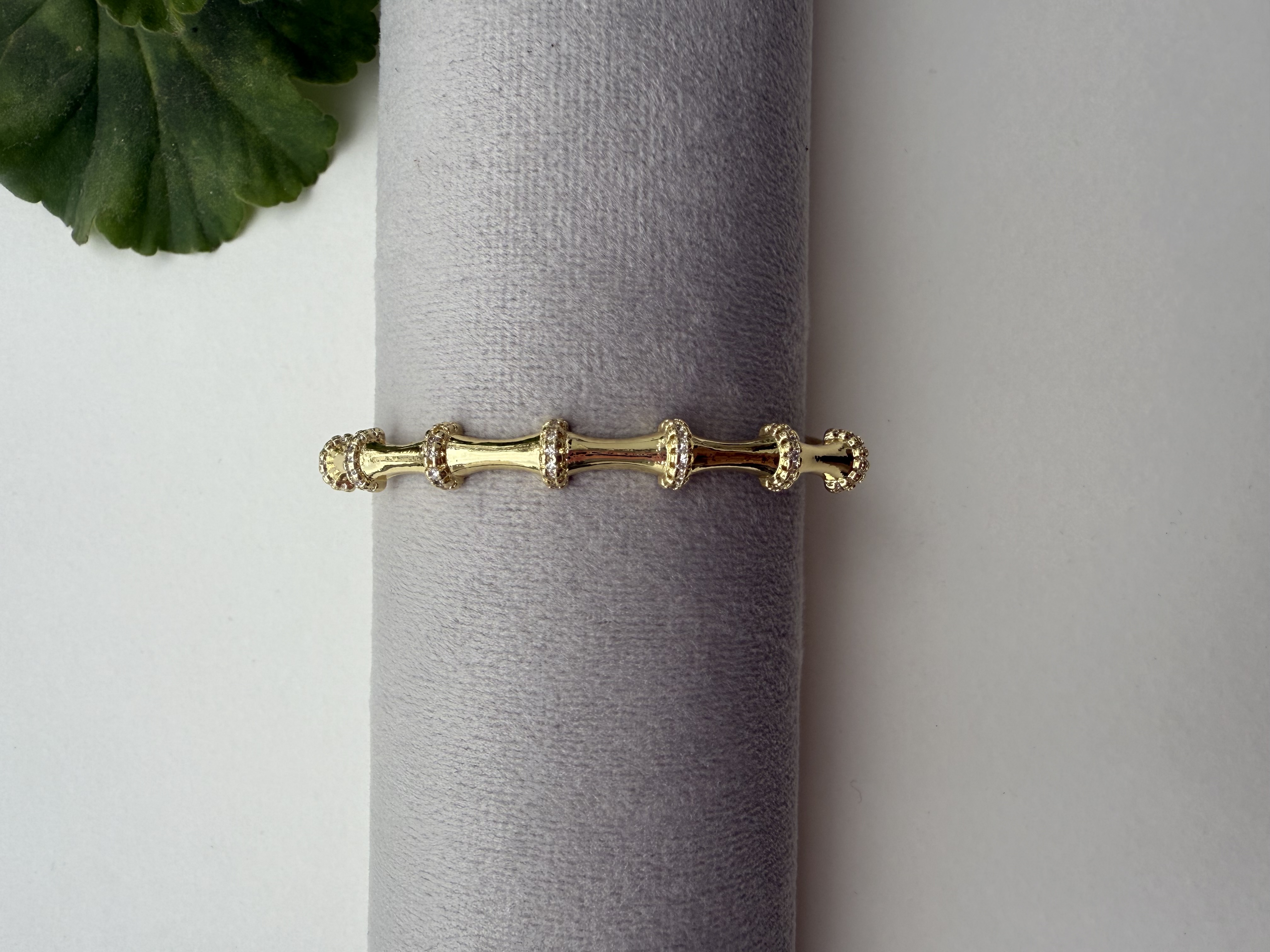 بنگل دستبند زنانه مدل استخونی استیل طلایی نگیندار کاملا مشابه طلا
